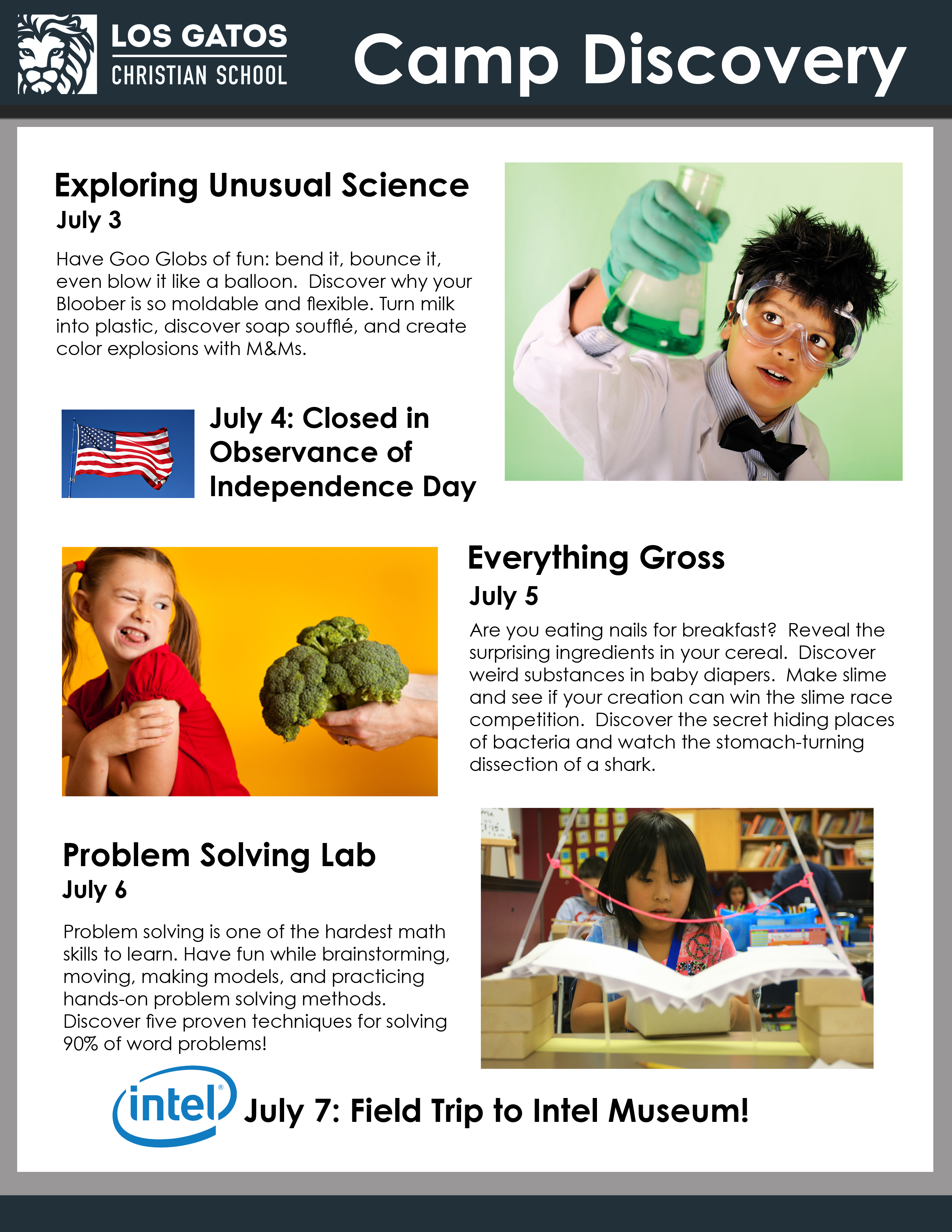 - July 3 - July 7: Camp Discovery *
